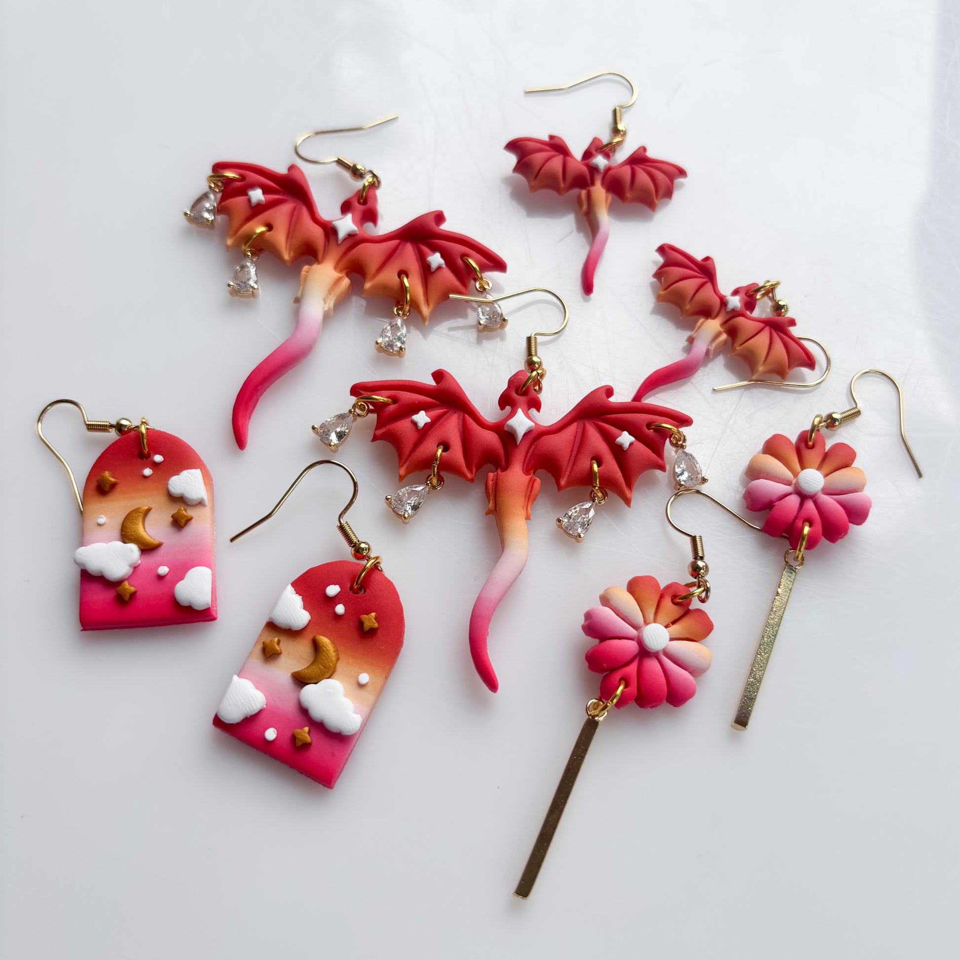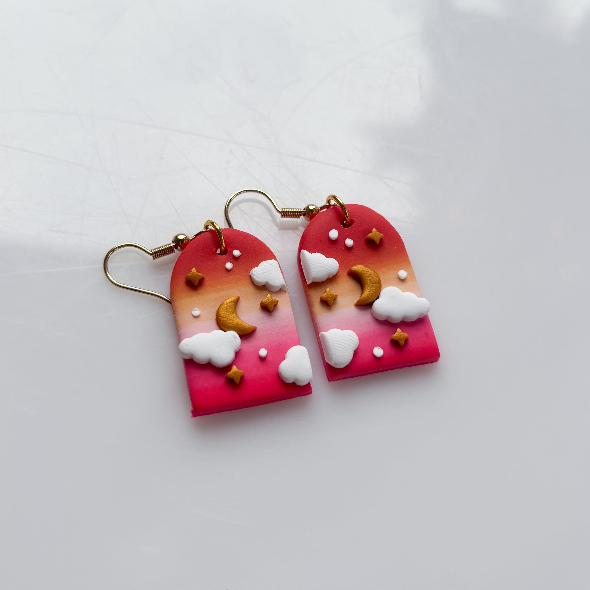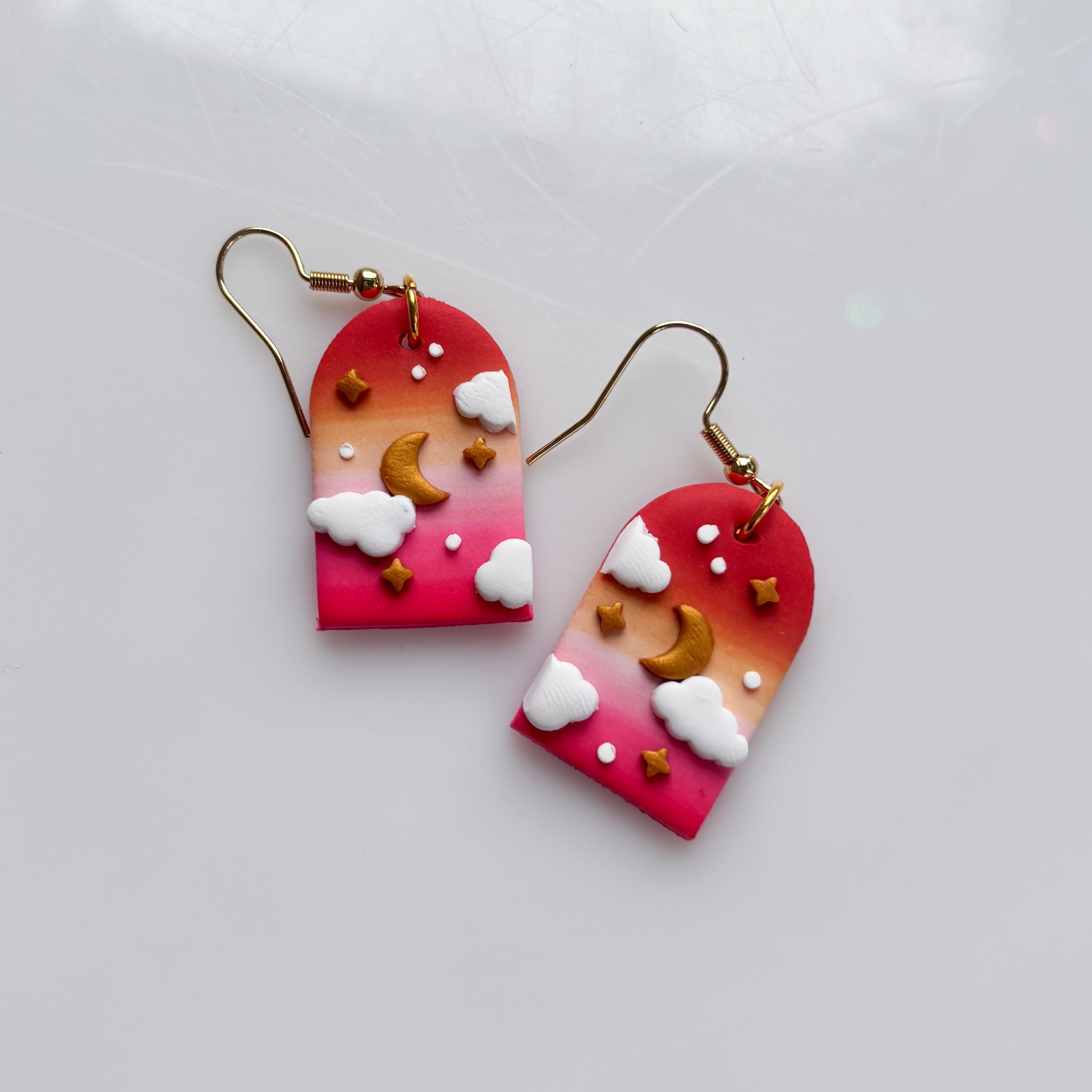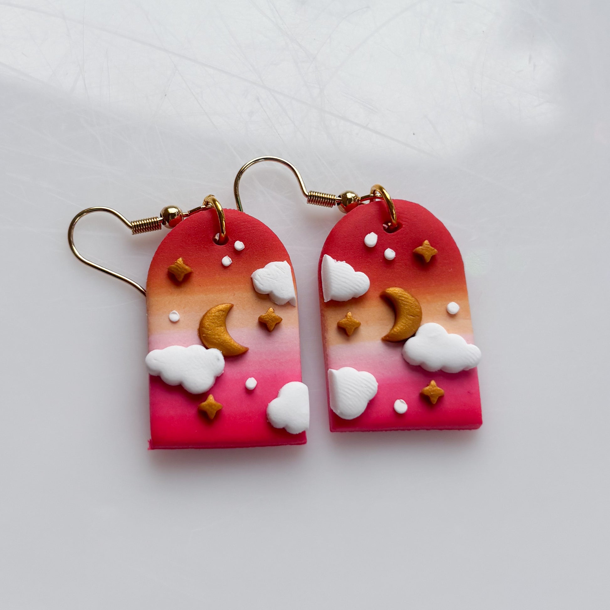 CLOUDY ARCH EARRINGS (LESBIAN FLAG)