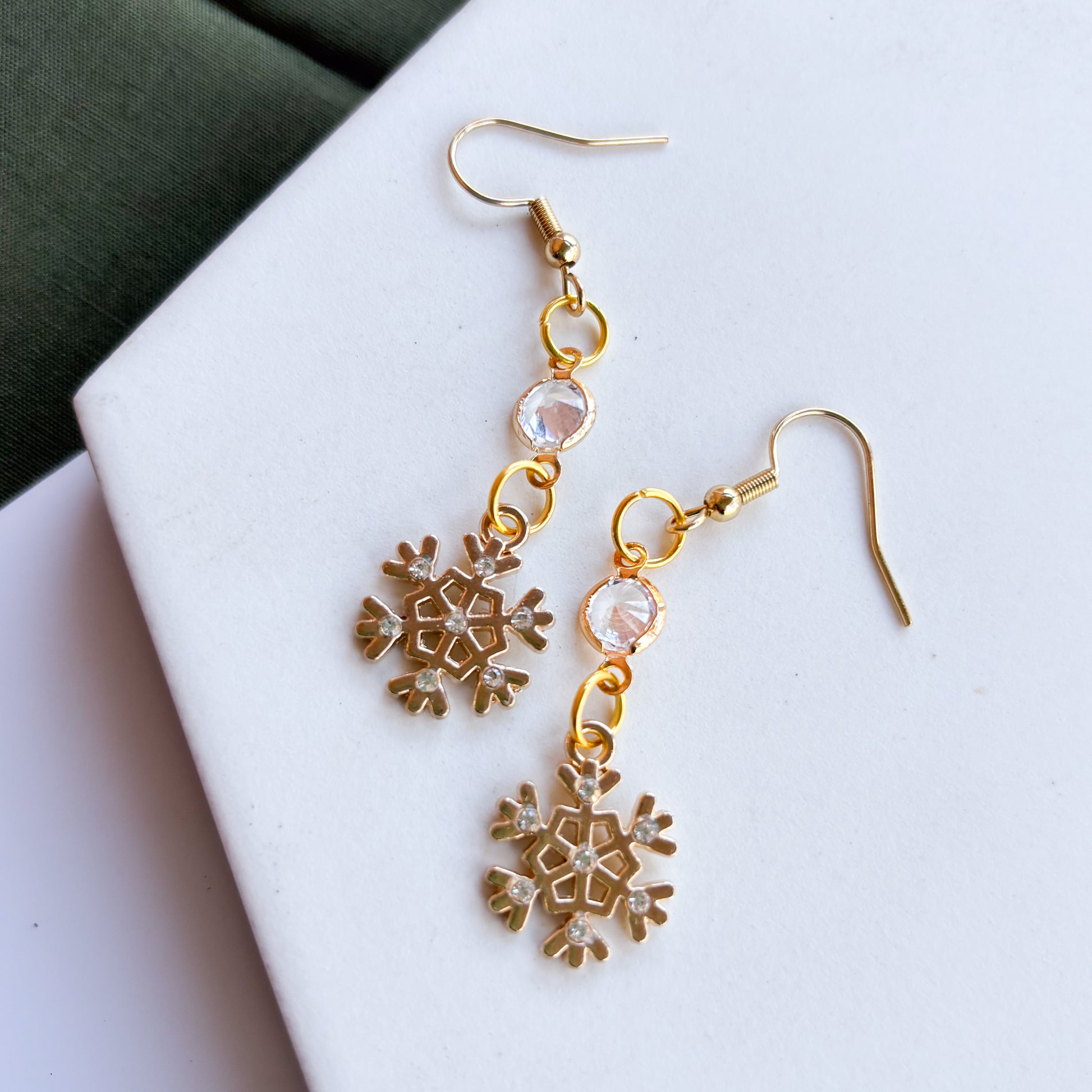 GOLD SNOWFLAKE & GEM CHARM EARRINGS