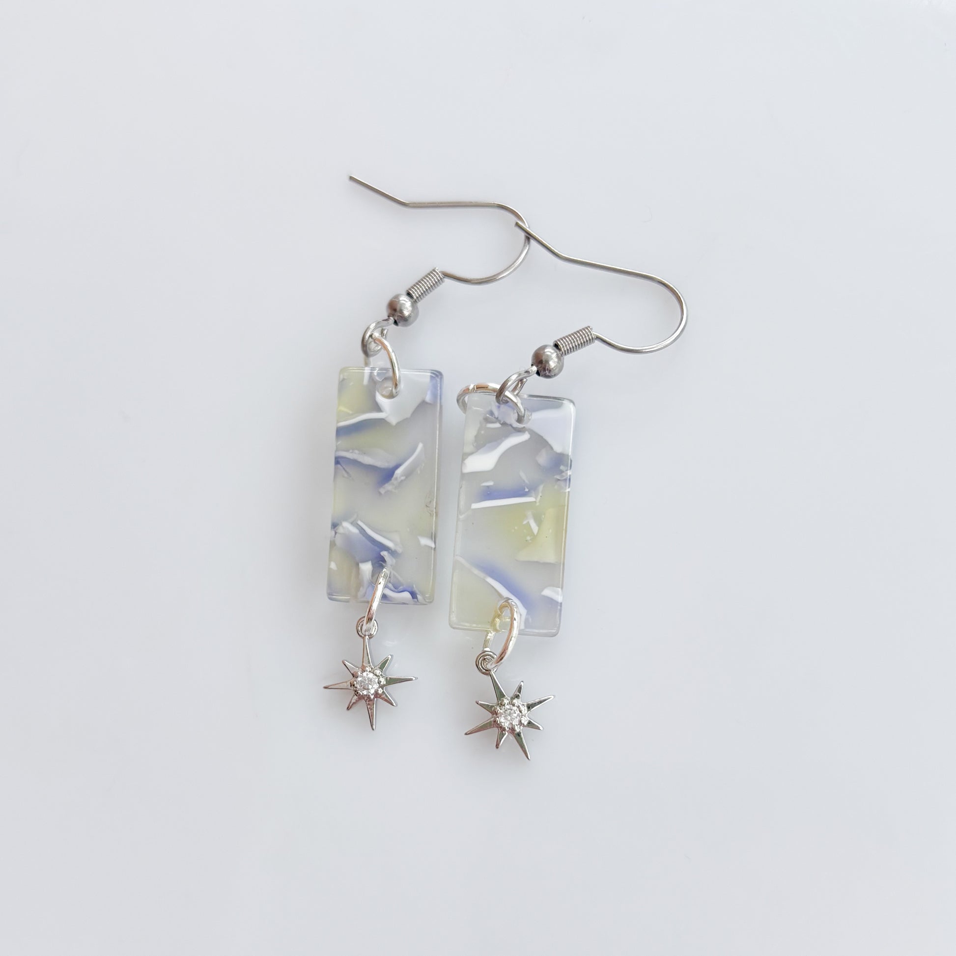 MARBLED ACRYLIC SILVER STAR CHARM EARRINGS