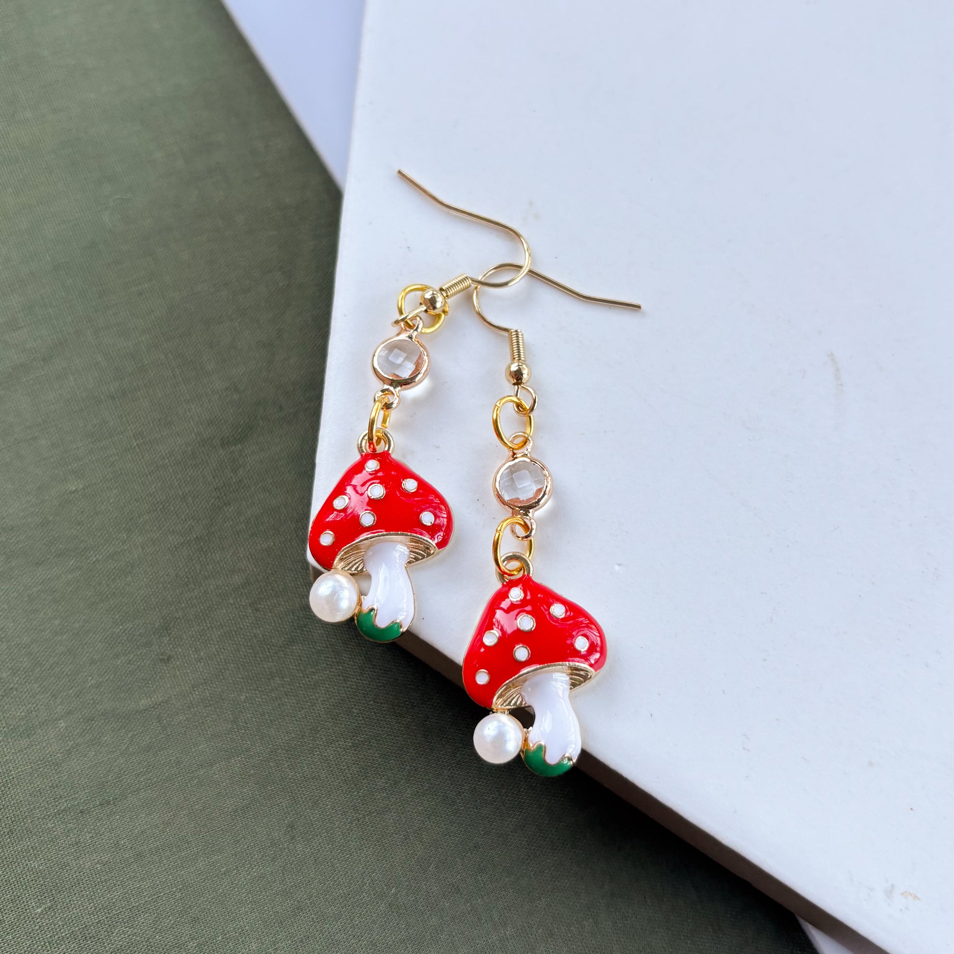 MUSHROOM & GEM CHARM EARRINGS