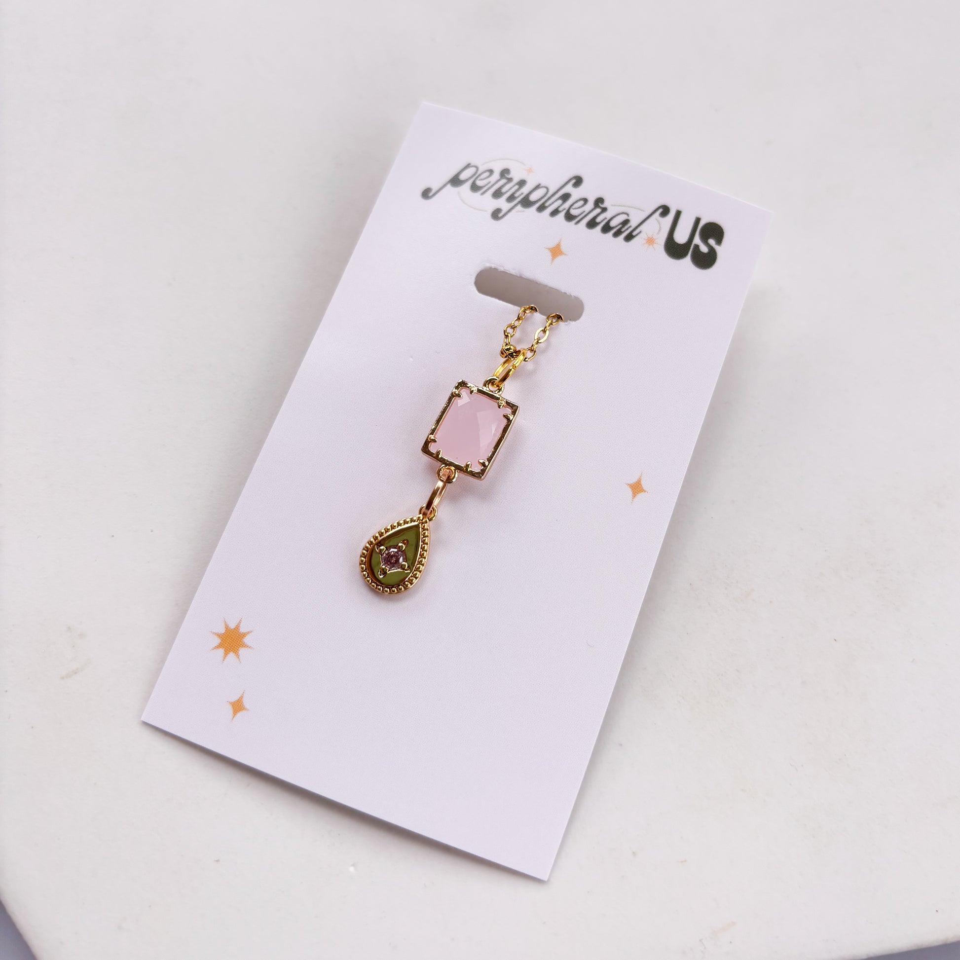 PINK SQUARE & TEARDROP CHARM NECKLACE