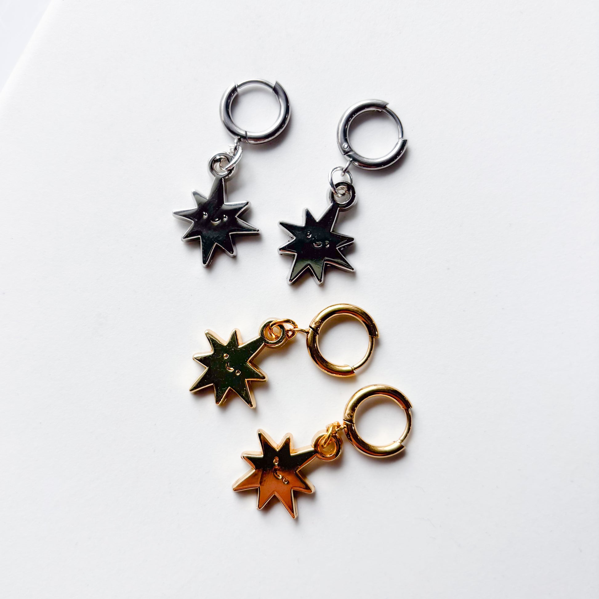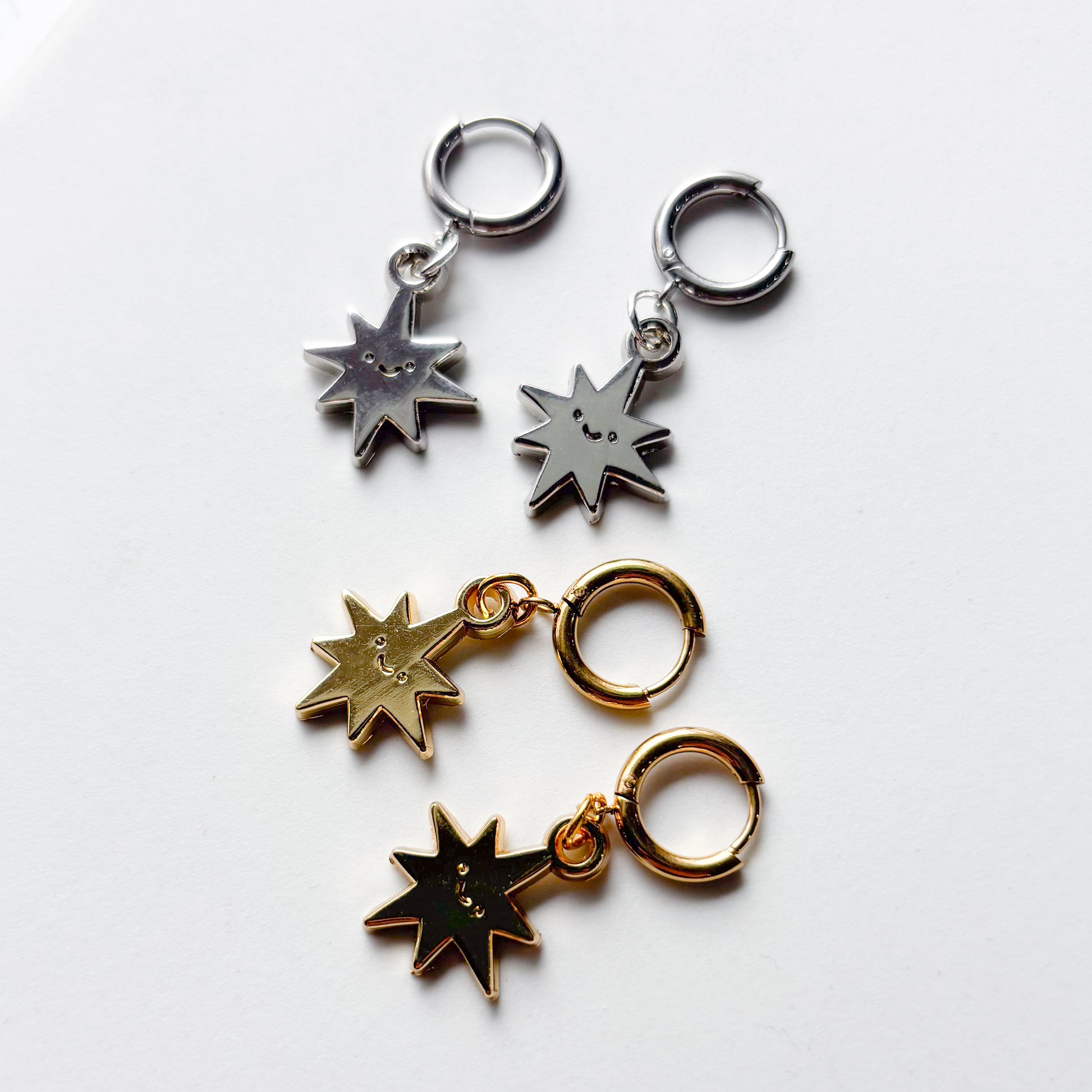 SMILING SPIKY STAR METAL HUGGIE HOOP EARRINGS