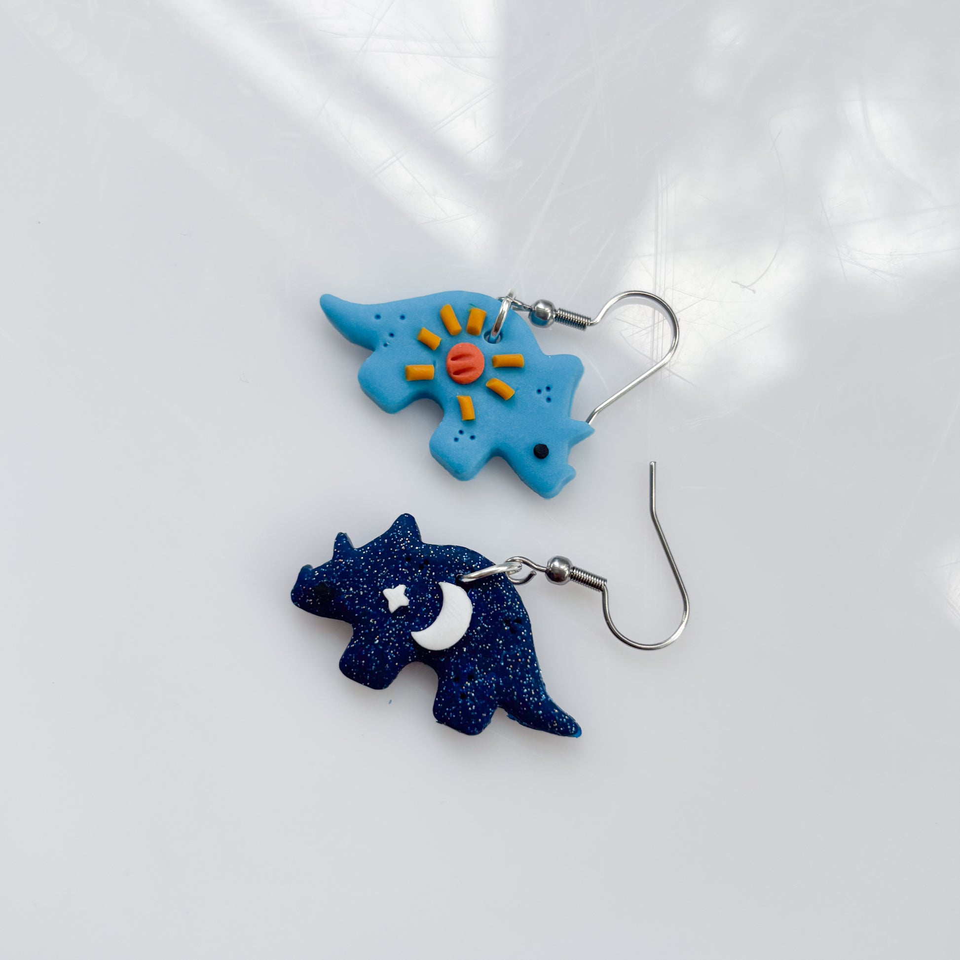 SUN & MOON DINO EARRINGS (TRICERATOPS)